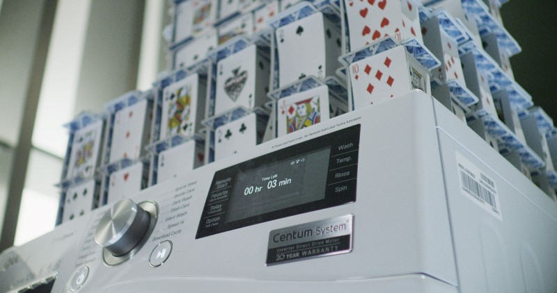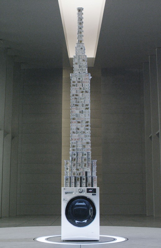 Гігантський картковий будинок, споруджений на працюючій пральній машині на LG – новий рекорд Гіннеса