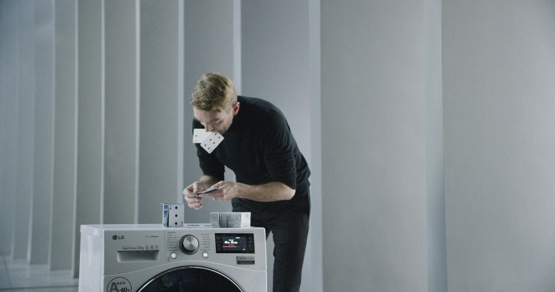 СЕУЛ, 8 квітня 2016 р. — Компанія LG Electronics (LG) та картковий скульптор Браян Берг встановили новий світовий рекорд – за 12 годин була створена найвища конструкція із карт (3,3 м). Примітним є той факт, що картковий будинок був споруджений на пральній машині LG, що працювала із швидкістю віджиму 1000 обертів за хвилину. Гарвардський архітектор Брайан Берг почав конструювати неймовірні скульптури із карт у віці 8 років та при співтоваристві із LG створив 48-поверховий будинок із звичайних гральних карт.