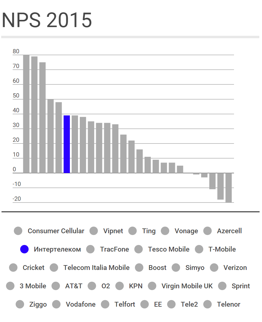 Варто відзначити, що такий показник є одним з найвищих у світовому масштабі. За даними ресурсу NPS Benchmarks, провідні телекомунікаційні компанії Європи (Tesco Mobile, Virgin Mobile) і США (T-Mobile, Verizon, AT&T) показують менші рівні лояльності абонентів: 38% у Tesco Mobile, 35% у T-Mobile, 22% у Verizon, 11% у AT&T та всього 7% у Virgin Mobile Річарда Бренсона.