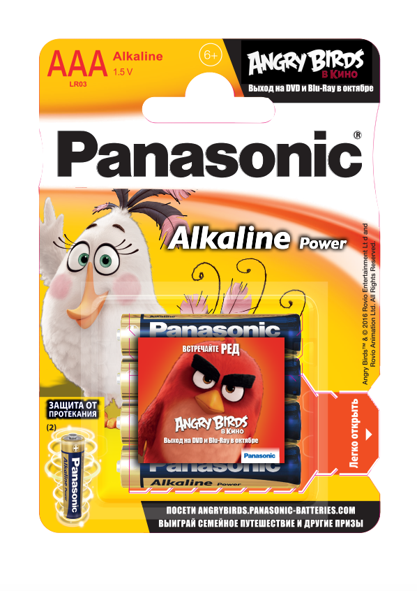 Серія батарейок Panasonic «Angry Birds у Кіно» представлена двома лінійками типорозміру АА і ААА: