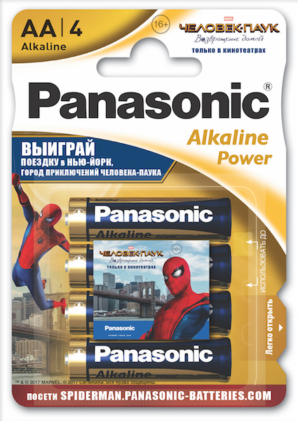 Спеціально до прем’єри фільму корпорація Panasonic випустила лімітовану серію лужних батарейок в дизайні «Людина-павук: Повернення додому». На упаковці продукції зображений непереможний супергерой, який стежить за порядком в своєму улюбленому місті Нью-Йорку. Для справжніх фанатів пропонується лімітована серія з колекційними наклейками Людини-павука всередині упаковки.