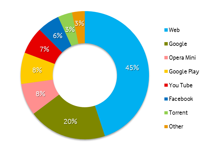 З запуском 3G змінилися не тільки обсяги трафіку, але й вподобання у виборі контенту. Так, споживання зміщується в бік більш «важких» видів трафіку, таких як відеоконтент.