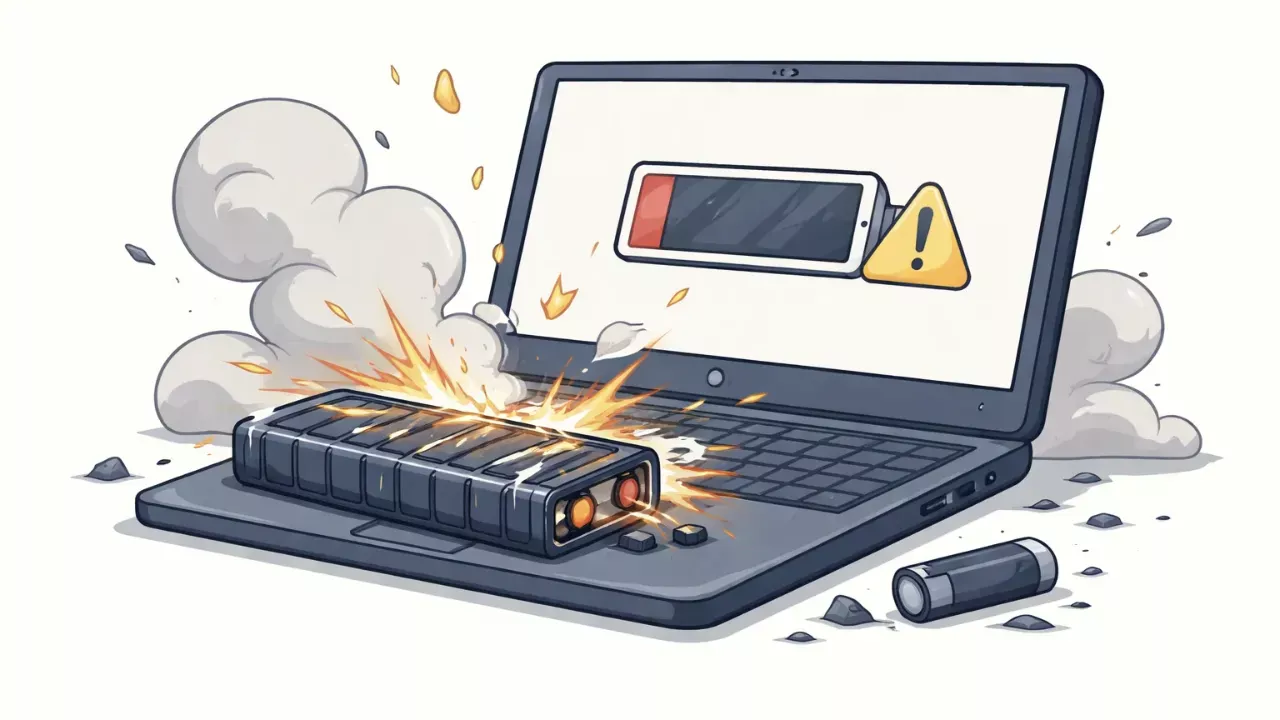 Якщо ви впустите ноутбук або щось вдарить по ньому, внутрішня батарея може бути пошкоджена. Корпус деформується, і це впливає на різні компоненти всередині, що є ВЕЛИКОЮ проблемою. Контролер заряду мікросхеми також може бути пошкоджений ударом. Це мікросхема, яка контролює зарядку, а також стежить за температурою та запобігає перезарядженню. Якщо вона пошкоджена, ви зазвичай побачите непередбачувану поведінку, або, щонайменше, неправильне відображення рівня заряду.