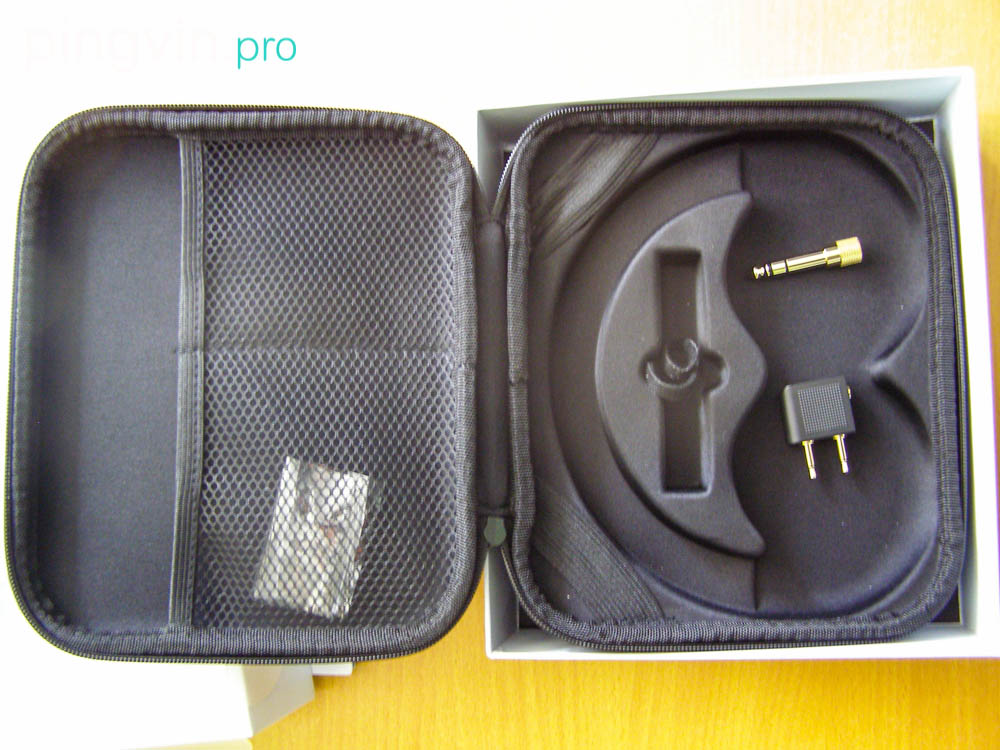 Кейс, навушники, знімний аудіодріт з пультом і мікрофоном, перехідник з 3.5 на 6.5 джек, адаптер для підключення гарнітури до ноутбука, а також гарантійний талон, щоправда, китайською.