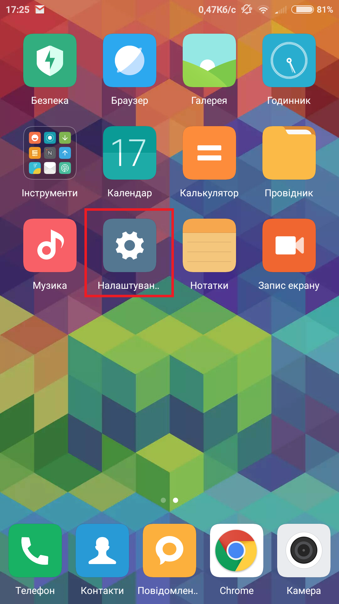 1. Увійдіть у «Налаштування»;