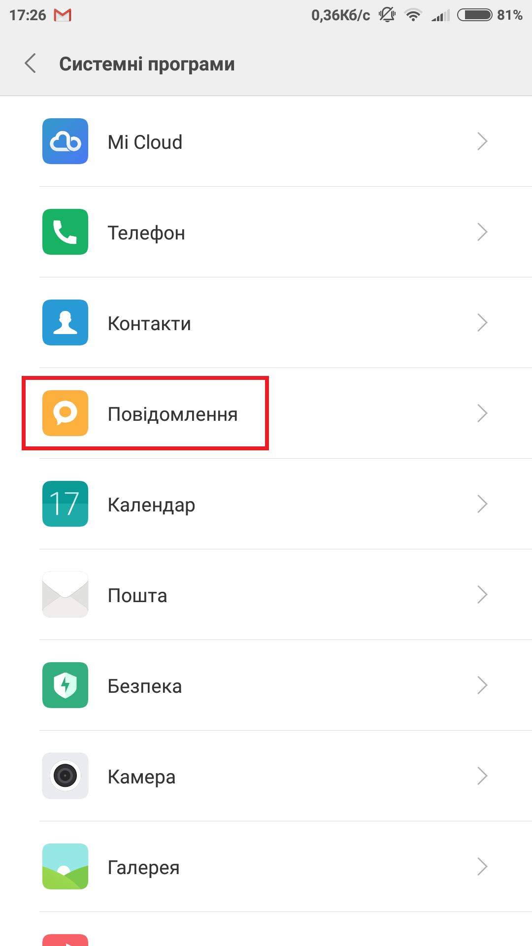 3. Далі, увійдіть у налаштування «Повідомлення»;