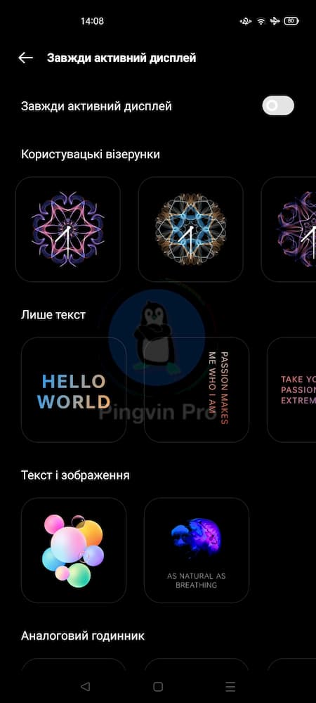 Всім добре відома функція Always-On Display отримала велике оновлення. Ви можете намалювати власний візерунок, який відображатиметься на екрані смартфона. Можете встановити дизайнерський аналоговий годинник, встановити якийсь цікавий підпис, наприклад гасло Вашого життя, цитату улюбленого письменника абощо.