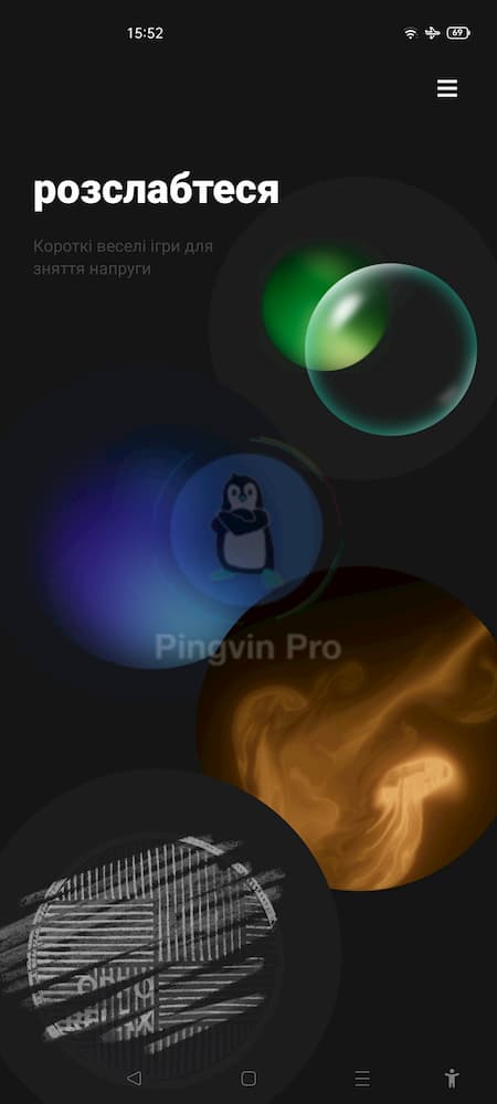 Другий розділ OPPO Relax 2.0 містить коротки ігри для зняття напруги. Нічого надзвичайного, але «відпочити головою» допоможе. Ви побачите чотири бульбашки. Натиснувши на першу, отримуєте бульки, які треба лускати пальцем, при цьому вони видають характерний звук. Жодного обмеження за часом чи змагань з кимось – все для розслаблення. Друга бульбашка – це вправа з дихання, яка допоможе нормалізувати його і заспокоїтися. Час вправи можна встановити від 1 хвилини до 5. Третя бульбашка – «малювання світлом». Просто водіть пальцем по екрану і насолоджуйтеся «танцями найрізноманітніших кольорів». І остання бульбашка також стосується малювання/писання. На чорному фоні ви можете малювати та писати будь-що, наприклад виплеснути негативні емоції після зустрічі з шефом. Внизу екрана є кругла кнопка, натиснувши на яку можна в один дотик стерти написане/намальоване, так би мовити приховати докази 🙂