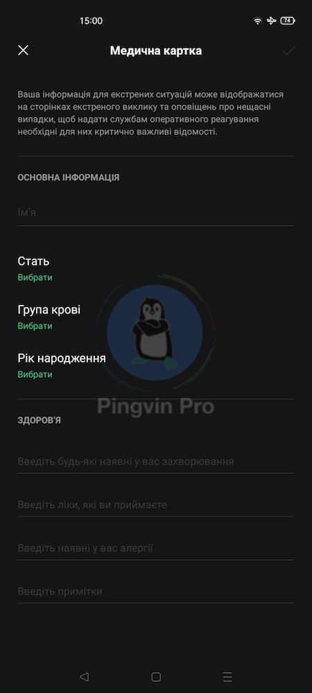 В разі надзвичайної ситуації (сподіватимемось таких не буде, але ви мусите це знати), ви можете швидко відображати всю важливу інформацію для служб екстреного реагування. До таких служб належить, зокрема швидка допомога, а ваші дані – це ім’я, вік, група крові та перенесені захворювання тощо.