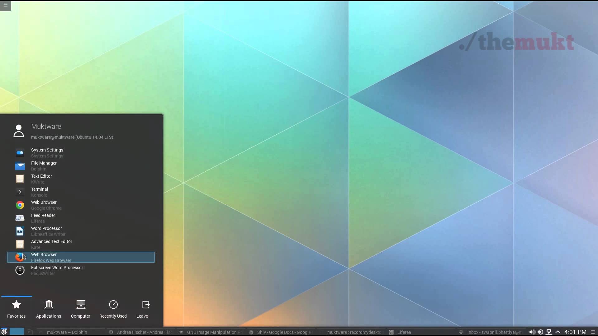 Я користуюся KDE через те, що її можна налаштувати на свій смак. Віджети, величезна кількість тем оформлення (в тому числі й мімікрія під Windows та Mac OS), налаштування панелей та меню, вікна авторизації та привітання, всього.