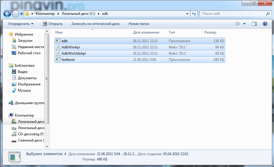 4. Відкривши командний рядок (Пуск – Пошук – cmd.exe), вводимо команду cd c:\adb