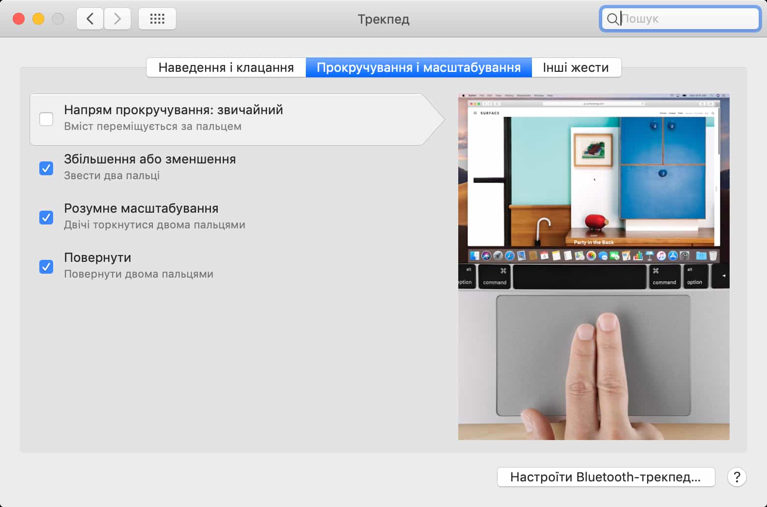 І наостанок варто ще згадати про жести. Якщо ви гадаєте, що вони такі самі, що у Windows, то ви дуже сильно помиляєтесь! Скажу вам по секрету, що я також так раніше вважав. Жести на macOS повністю вбудовані в систему. Нема потреби щось окремо довстановлювати, як це часто буває на Windows. Жести та Mac – це одне ціле. Вони надзвичайно плавні, анімація просто на висоті, під час використання жестів ти починаєш насолоджуватися роботою.