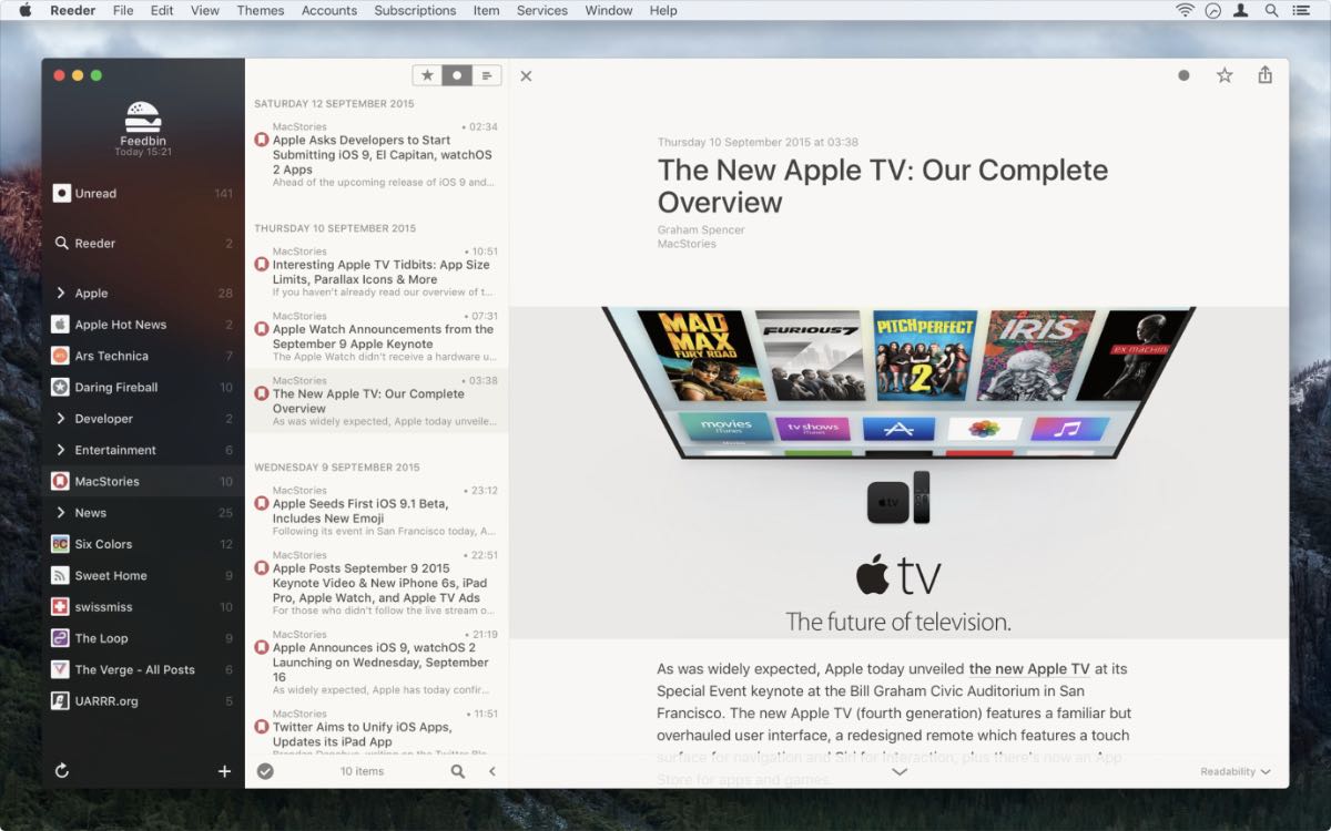 Якщо ви знаєте, що таке RSS, то розумієте, що хорошу програму знайти досить складно. Принаймні ту, яка влаштовуватиме своєю функціональністю та дизайном. Reeder 3 – це саме той шикарний варіант, який підійде багатьом користувачам macOS. І що важливо, програма доступна із Mac App Store повністю безкоштовно.