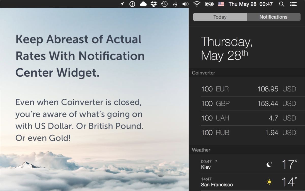 Гадаю, що в кожного були випадки, коли потрібно конвертувати гроші. Для цього було потрібно шукати через Google і заходити на сайт НБУ, щоб дізнатися точну цифру. Що тут казати, це довгий та нудний процес. Проте, Coinverter все змінює. Програма безкоштовна і доступна не лише під macOS, а й для iOS. І що дуже важливо для мене, вона має гарний дизайн і підтримує українську мову.