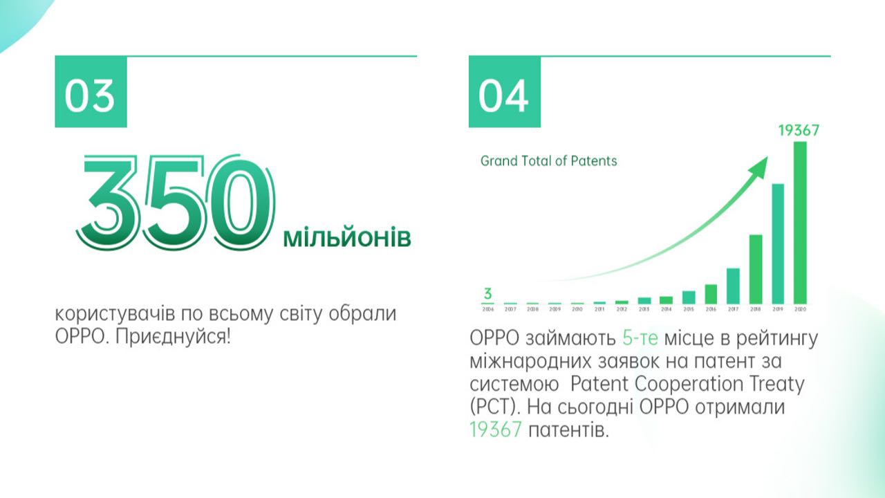 OPPO – провідний світовий виробник смарт-пристроїв, зокрема камерафонів. З моменту випуску свого першого телефона – «Smiley Face» у 2008 році – OРРO втілювала синергію естетичного задоволення та інноваційних технологій. На сьогодні корпорація пропонує широкий спектр розумних пристроїв, на чолі із серіями Find та Reno, з операційною системою ColorOS, а також інтернет-сервісами OPPO Cloud та OPPO+. Компанія працює в більш ніж у 40 країнах і регіонах світу та нараховує понад 40 000 співробітників. Вона входить до топ-4 брендів на ринку смартфонів у світі та надає відмінні можливості для фотозйомки смартфоном більш ніж 300 млн людей. Компанія має 6 науково-дослідницьких інститутів та 4 науково-дослідницьких центри по всьому світу, а також Міжнародний центр дизайну в Лондоні.