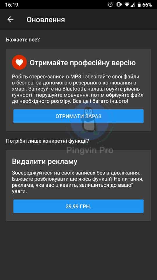Я й досі користуюся своїм Xiaomi Mi A1. А оскільки він на Android One, то такі переваги як додаток диктофона, просто не включені в ОС. І коли мені потрібен був терміново диктофон, я завантажила цю програму. Можливо є й кращі в Google Play, але мені і цей додаток добре підійшов. Записувала я інтерв’ю в галасливому місці, людина сиділа навпроти мене, але на відстані близько 1-1.5 м, ніхто з нас надто не перекрикував навколишній гамір – і все записалось шикарно.