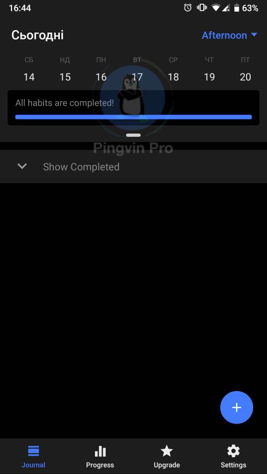 На вкладці «Прогрес» ви можете бачити свої успіхи. Вам показано скільки завдань із запланованих ви сьогодні виконали. Також є показники успішності виконання за тиждень і за місяць чи кілька місяців.