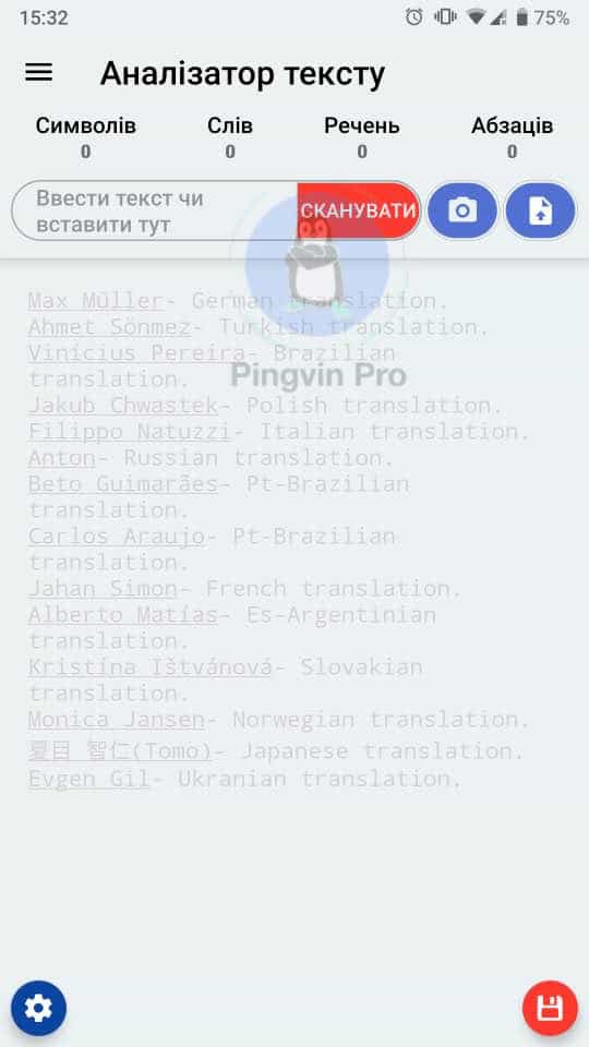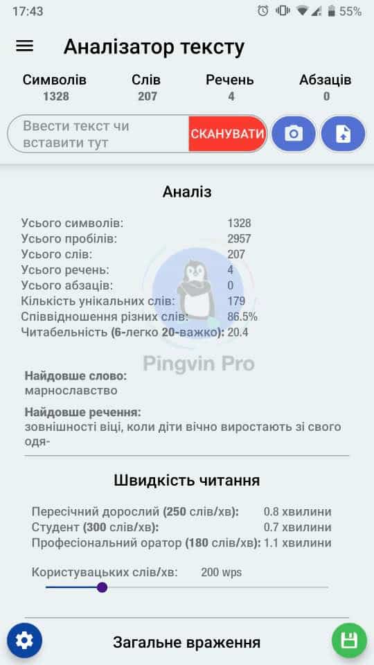 Аналізатор тексту (тільки для Android)