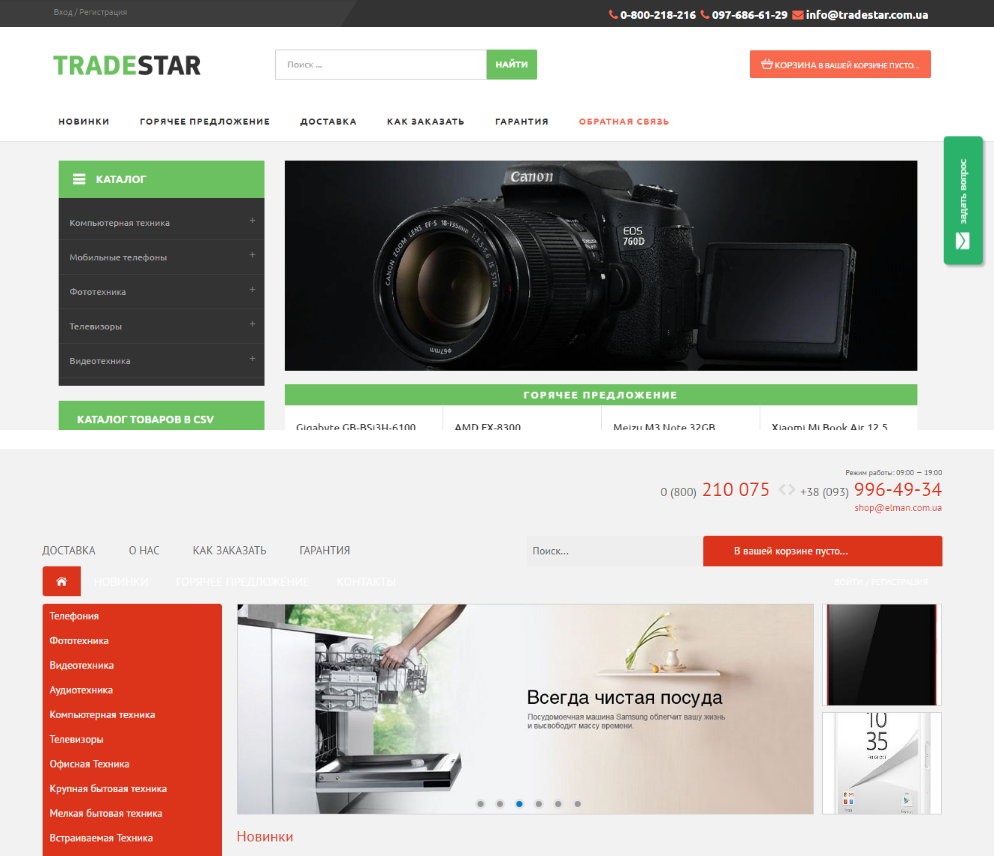 Всі сайти створювалися під «продаж» побутової техніки, мобільних телефонів та аксесуарів.