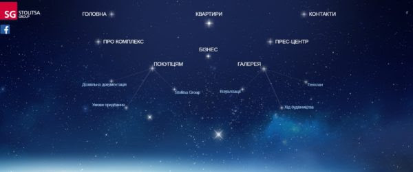 Сайт ЖК «Галактика» за адресою http://galactika.com.ua володіє оригінальним дизайном (структура меню імітує зоряне небо).