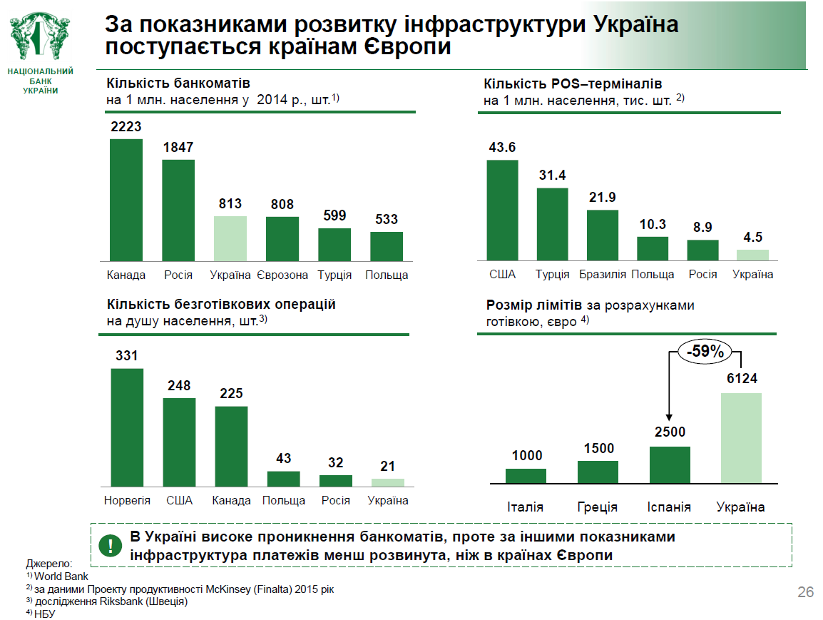 В області платіжної інфраструктури України відстає від європейських норм і від показників розвинених країн.