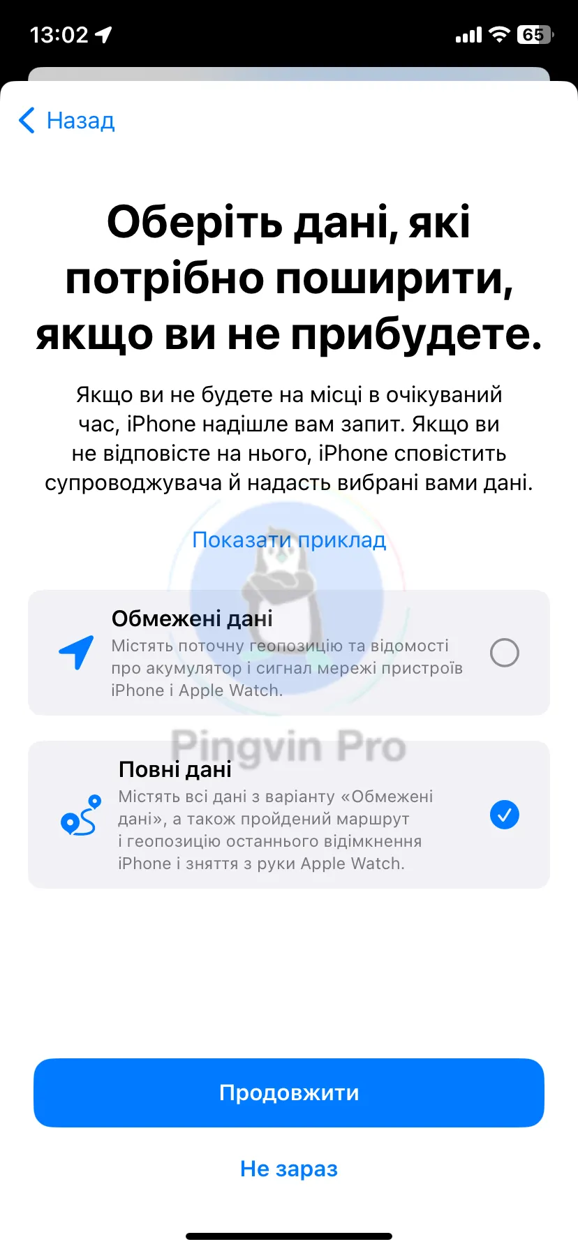 - Повні дані – містять всі дані з варіанту «Обмежені дані», а також пройдений маршрут і геопозицію останнього відімкнення iPhone і зняття з руки Apple Watch.