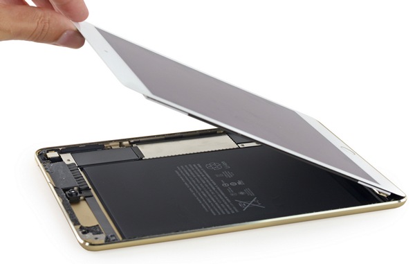 На нижньому торці iPad mini 4, наприклад, можна помітити, що збільшилися отвори решітки динаміків, розташовані в один ряд. 7,9-дюймовий дисплей планшетного комп’ютера позбувся повітряного прошарку і тепер представляє єдине ціле зі склом лицьовій панелі. Не в останню чергу завдяки цьому товщина корпусу зменшилася на 18% порівняно з iPad mini 3. Однак у iFixit відзначають, що вартість заміни такого екрану помітно збільшиться.