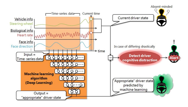 Компанія Mitsubishi Electric представила технологію, яка буде стежити за уважністю і втомою водія за кермом, використовуючи машинний алгоритм, відомий під назвою «глибоке вивчення».