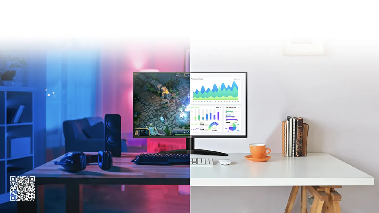 Обидві моделі оснащені IPS-панелями із кутами огляду 178°/178°, що гарантує стабільну передачу кольорів під різними ракурсами. Яскравість становить 300 кд/м², – цього достатньо для типової кімнатної або офісної підсвітки. Q27B36X має щільність 109 ppi і охоплення 118.5% sRGB та 92.1% DCI-P3 для широкого колірного діапазону. Q24B36X демонструє 123 ppi і охоплення 114.7% sRGB та 88.8% DCI-P3, що забезпечує вищу чіткість на меншій діагоналі. Різницю в щільності пікселів помітять ті, хто регулярно працює з дрібним текстом або вузькими інтерфейсами. Широкий колірний діапазон робить ці монітори придатними для мультимедійного контенту та аматорської обробки фото. За потреби професійної кольорокорекції рекомендується виконати калібрування екрану.