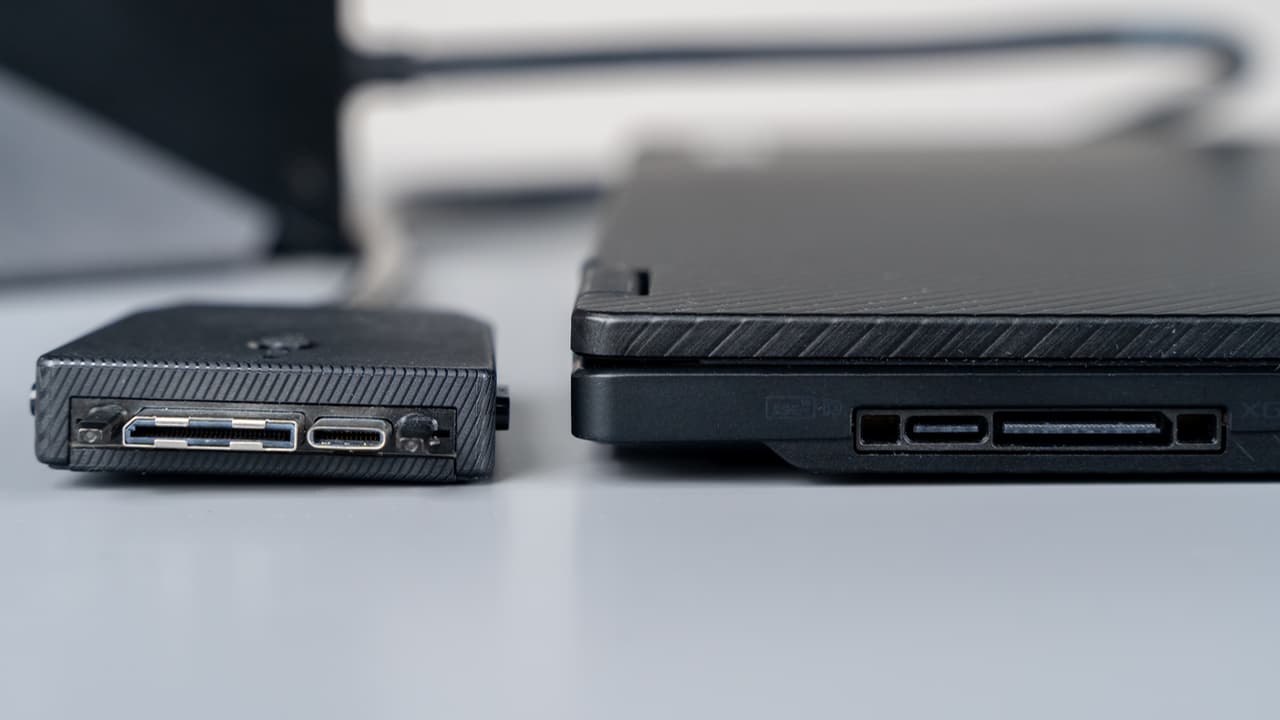 | Роз’єми | 1 x інтерфейс XG Mobile + 1 x USB Type-C (USB 3.2 Gen 2, DisplayPort 1.4 та USB Power Delivery) 1 x USB Type-C (Thunderbolt 4, DisplayPort 1.4 та USB Power Delivery) 1 x USB Type-A (USB 2.0) 1 x microSD 1 x 3.5 мм комбінований аудіороз’єм |