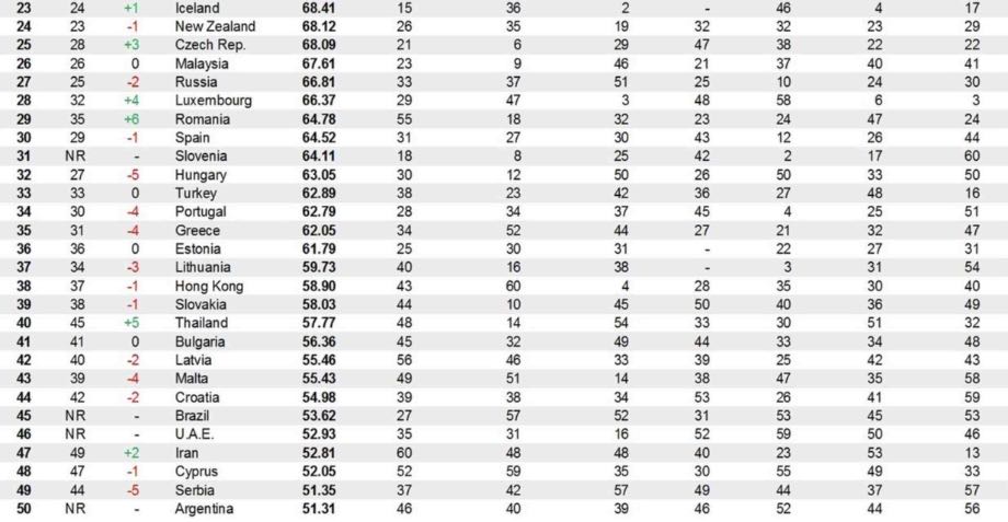 Отже у підсумку, перше місце в рейтингу посіла Південна Корея, друге і третє – Німеччина та Фінляндія відповідно. Цього року Україна посіла 53 місце і порівняно з минулим роком вона опустилася на 7 місць. Гірші справи тільки у Туніса.