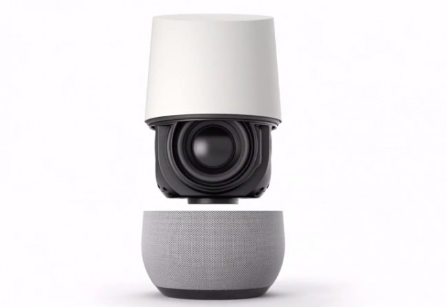 Сам пристрій спроектовано дизайнерами так, щоб він елегантно вписувався в будь-який інтер’єр в якості «вази» або «світильника». Універсальна форма взагалі не дозволяє запідозрити в ньому розумний предмет. Хіба що він запалає світловими індикаторами при розпізнаванні вашого голосу (Йой- Точно як собака, що починає метушитись, коли відчує запах господаря, що повертається з роботи додому). Але для цього треба сказати чарівну фразу «OK, Google». А якщо лінь говорити, можна натиснути на кнопку мікрофона на корпусі. Вона знаходиться поруч з сенсорними кнопками регулювання гучності.