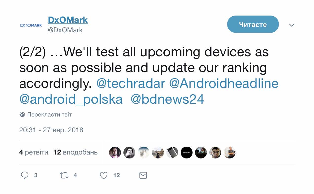 Сьогодні ресурс DxOMark відреагував на недавнє злиття інформації, а саме знятка, який ніби-то був зроблений на їхньому сайті. В рейтингу були моделі смартфонів, які ще навіть не представлені офіційно. А також ті пристрої, що не тестувалися ресурсом. Мова іде саме про можливості тилових камер таких мудрофонів як Huawei Mate 20 Pro, Google Pixel 3, OnePlus 6T чи Apple iPhone Xs, Xs Max та Xr.