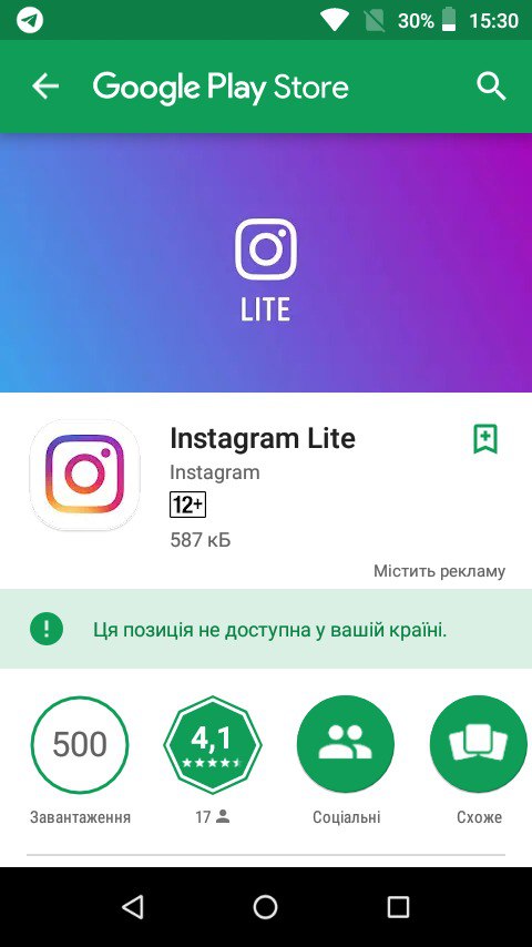 Важить цей додаток всього 587 КБ, а виглядає досить пристойно та практично не відрізняється від звичайної версії. Завантажити для нашої країни його неможливо, але якщо змінити локацію в налаштуваннях то можна спробувати. Його вже завантажили понад 500 разів. Наразі, Instagram Lite ще не має Direct, але переглядати та викладати Stories чи фото можна.