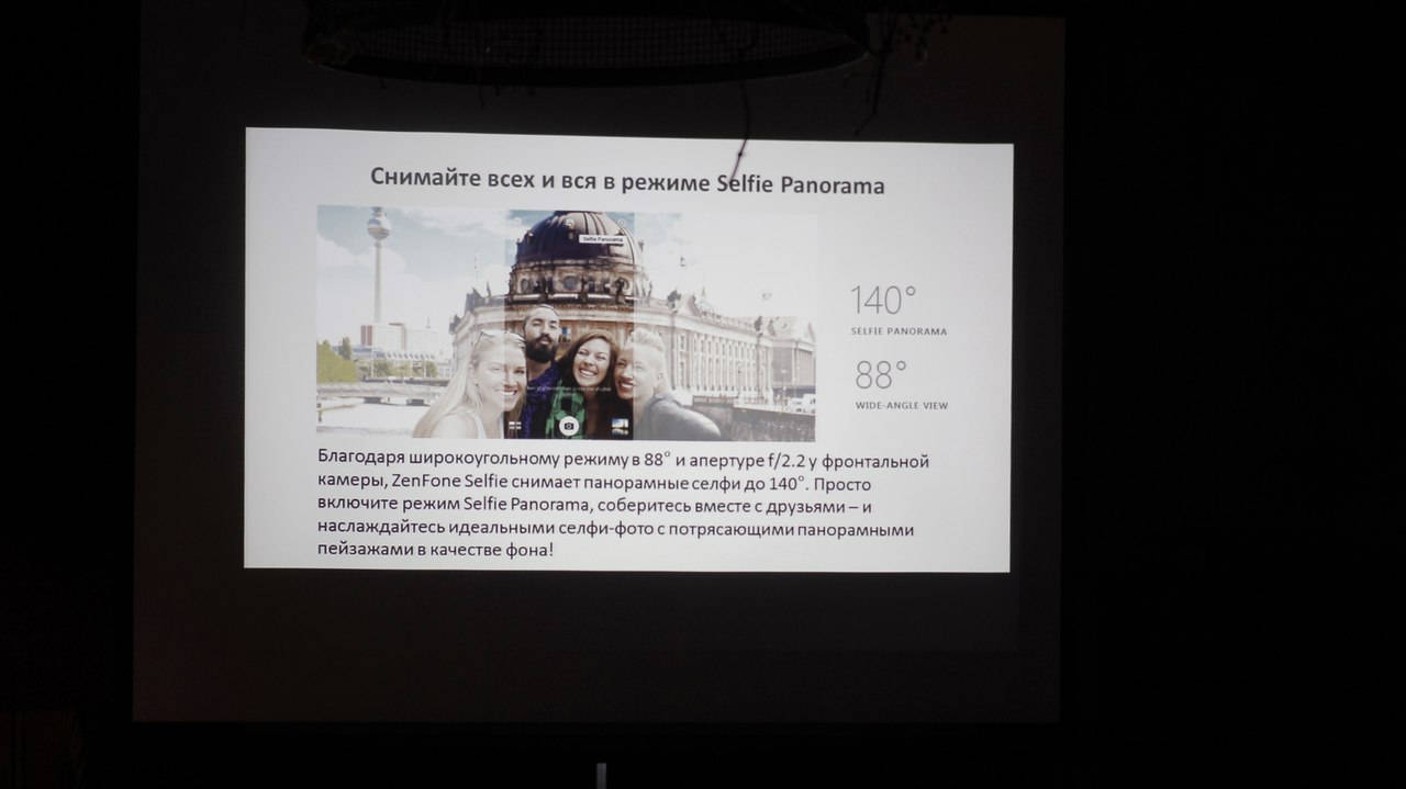 Тепер що самих смартфорнів. Найбільше уваги, звісно приділили найдорожчій моделі ZenFone Selfie, і як не дивно основний акцент був саме на камерах. Девайс отримав лазерний афто фокус для обох камер, модуль камери з 5-ма лінзами, та купу софтових примочок для обробки фото. Також не обійшлось без управління жестами, яке знайому нам з огляду ZenFone 2. Від себе особисто відмічу наявність ручного режиму, доступного в один тап.