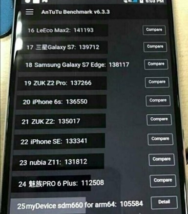 Витік інформації вже давно відбувся у вигляді двох зображень, які показують, скільки балів у тесті AnTuTu показує «660 дракон». І цифри дійсно вражають. Це 105.576 балів. Якщо це правда, то це досить висока планка для діапазону смартфонів середнього класу. Цей результат тесту можна порівняти із тестом процесора «820», який є флагманським 2016 року. Максимальну кількість балів у тесті AnTuTu, процесор «820» показує близько 140.000. А мінімальну, десь в межах 110-115 тисяч балів. Отож, 660-ий “дракон” трохи не дотягує до флагмана 2016 року, однак різниця між ними не є дуже й великою. Якщо порівнювати «660» та «653», то різниця між ними у тесті AnTuTu сягає в межах 10.000-15.000 балів. І це дуже хороший показник для середнячка.
