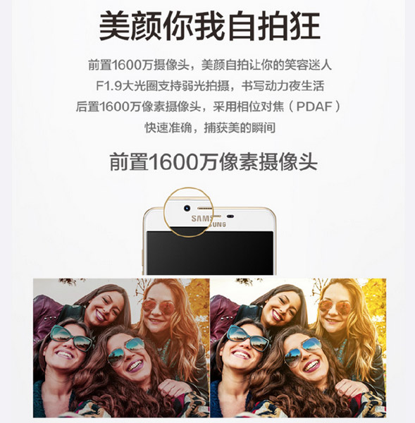 В апараті встановлені тильна 16 Мп камера і фронтальна камера з такою ж роздільністю і фазовим автофокусом. При цьому обидві камери пристрою мають діафрагму f / 1.9.