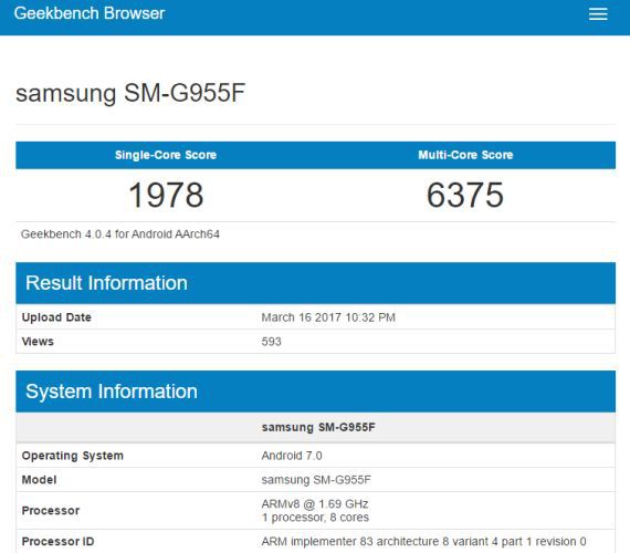 Буквально всередині минулого тижня в базі даних бенчмарка GeekBench було знайдено результати тестування мудрофона Samsung Galaxy S8 Plus, що показав 1978 та 6375 в одноядерному і багатоядерному тестах відповідно. Відзначимо, що в GeekBench вже показувався Galaxy S8 Plus, проте тоді йшлося про версію під модельним номером SM-G955U на базі процесора Snapdragon 835 від Qualcomm, а тепер – на фірмовому Exynos 8895 з номером SM-G955F. Сьогодні ж в мережі з’явилися приблизні результати смартфона Samsung Galaxy S8 в тесті AnTuTu. Новинка набрала значні 205 284 бали і, таким чином, поставила рекорд. Для порівняння, iPhone 7 Plus, нинішній володар статусу “найпотужнішого смартфона” в AnTuTu має результат 184 981 балів.