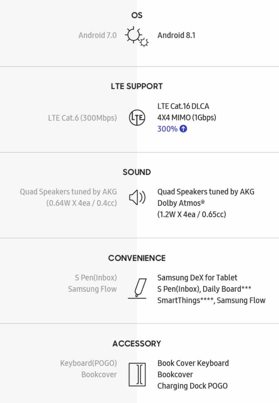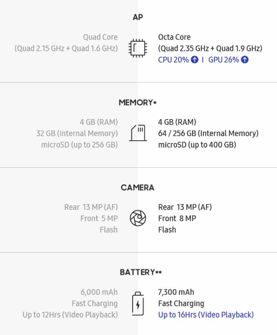 Порівняльна інфорграфіка Samsung Galaxy Tab S3 vs Samsung Galaxy Tab S4: