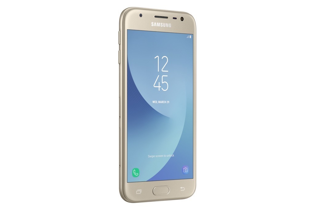 Найдешевший з трьох Galaxy J3 (2017) він має 5″ дисплей з роздільною здатністю HD (720p) і 13 МП основну камеру. У смартфоні 4-ядерний процесор Exynos 7570 (1,4 ГГц), 2 ГБ ОЗП і 16 ГБ флеш-пам’яті. Він підтримує дві SIM-карти, додатково є 5 МП камера для Селфі і акумулятор на 2 400 мА*год.