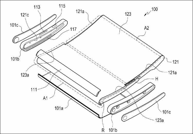 На сайті Управління США з патентів і торгових марках (USPTO) опублікована патентна заявка Samsung на «Електронний пристрій з секцією гнучкого дисплея» (Electronic device including flexible display element).