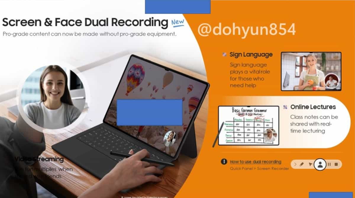 Ззаду кожного планшета є стійка, відхиливши яку можна буде виставити пристрій під різні кути огляду. До планшетів можна буде підключати чохол-клавіатуру та мишку, яка в налаштуваннях матиме розширені можливості налаштування. Таким чином, мобільний планшет перетворюється у ноутбук для роботи. Всі три моделі матимуть стилус S Pen, і кожен дозволить примагнітити його на задній панелі прямо біля камери. Анонс планешетів має відбутися 9 лютого.