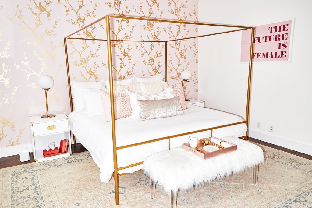 У квартирі високі дерев’яні стелі та вихід на дах, білі стіни й рожевий диван. Бібліотека укомплектована книгами, проте увагу приділено не змісту, а зовнішньому вигляду.