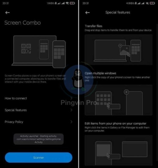 Xiaomi додала функцію Screen Combo у Xiaomi Mi 10 Ultra. Зараз вона перебуває на стадії бета-тестування. Ця функція дозволяє відображати екран смартфона на екрані комп’ютера. Також можна запускати мобільні додатки і просто перетягувати файли зі смартфона на ПК. Фактично, це своєрідний аналог мобільного застосунка Your Phone від Microsoft, який має доволі широку функціональність.