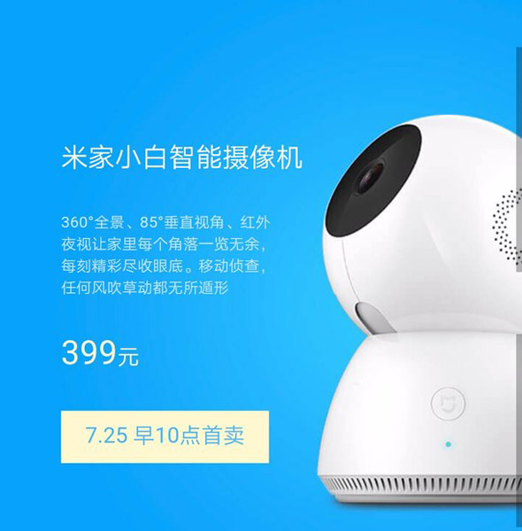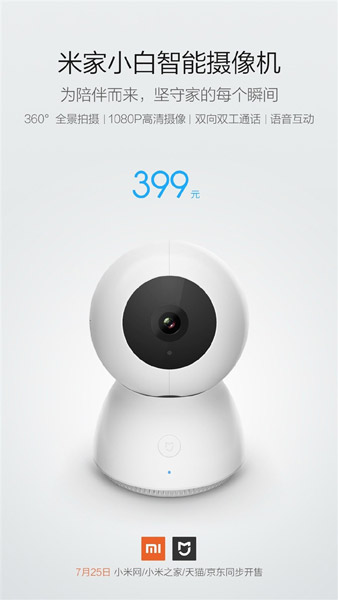 Компанія Xiaomi вчора офіційно представила 360-градусну камеру Mi White Smart Camera, орієнтовану на використання в якості компонента домашньої системи безпеки, вартістю лишень 399 юанів, що в перерахунку на українську валюту становить трохи менше 1 500 гривень.