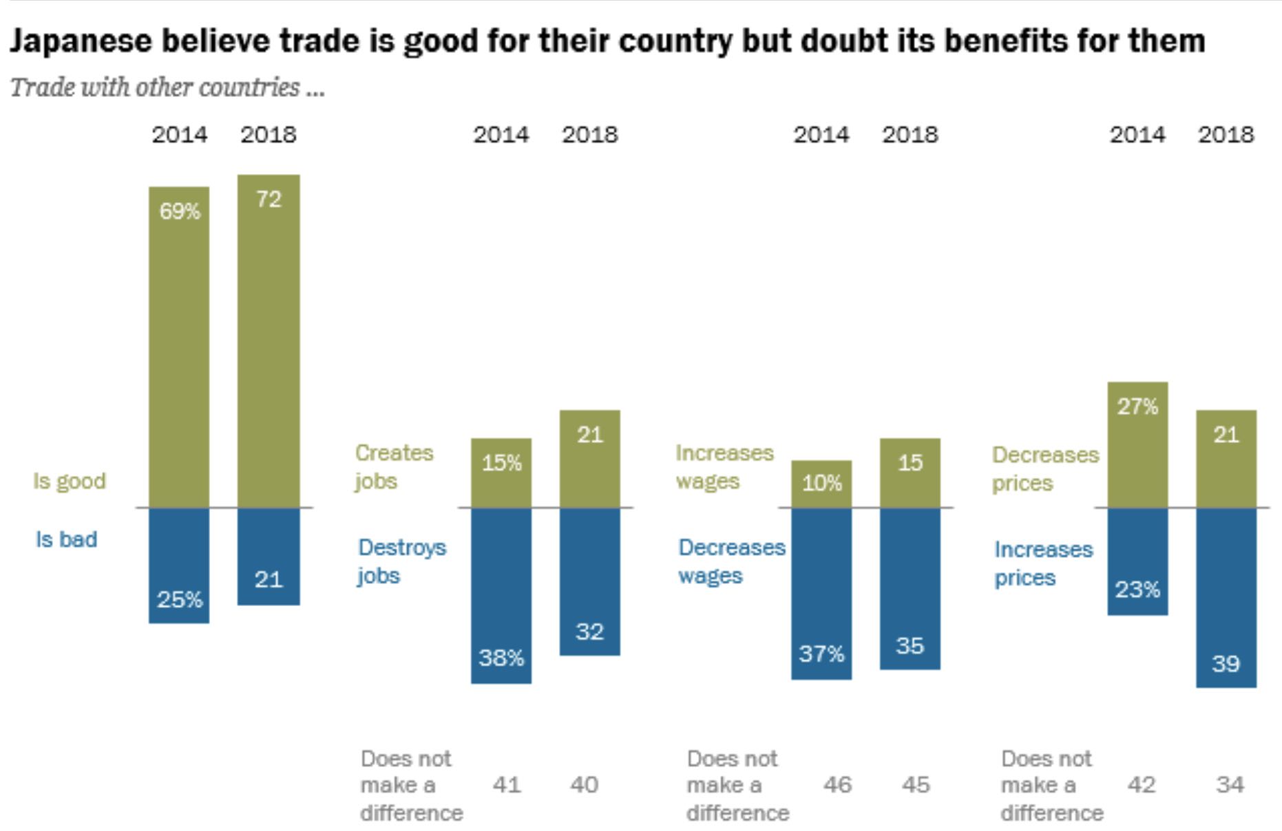 Згідно з опитуванням, 9 з 10 японців вважають, що за 50 років більшу частку робіт замість людей виконуватимуть роботи. Саме тому, 74% опитуваних переймаються за власне майбутнє. Адже вони не вірять у те, що може з’явитися більше нових спеціалізацій. Однак, попри свої побоювання, японці добре ставляться до роботів та вірять, що автоматизація зміцнює економіку країни.