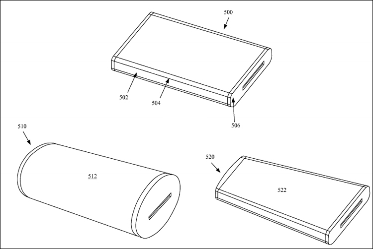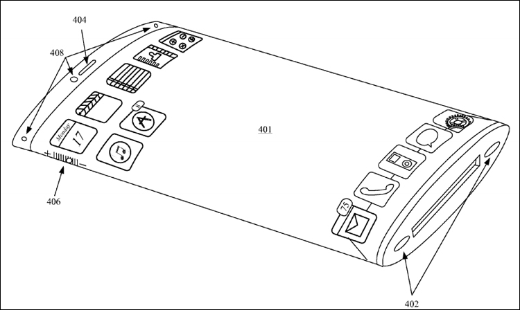 У документі №9,146,590 від 29 вересня 2015 мова йде про так званий «електронний пристрій, який огинає дисплей» (Electronic device with wrap around display). Ідея полягає в тому, щоб застосовувати в ґаджетах екрани, здатні до деформації – зокрема, до вигинання. На ілюстраціях, що супроводжують патент, зображено мобільний пристрій, що має дисплей дугоподібної форми. Передбачається, що така конструкція дозволить реалізувати нові режими перегляду зображення, а також дасть можливість виводити на екран додаткову інформацію.