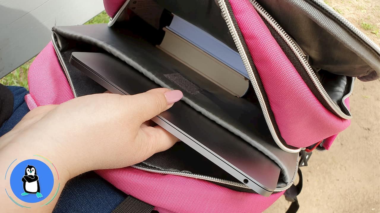 Велике відділення розраховане на ноутбук – там велика кишеня із застібкою на липучці. Кишеня досить груба і добре захищатиме пристрій. Оскільки відділення містке, а кишеня надійна, тут з легкістю можна тримати два ноутбуки. Або ж планшет чи іншу «крихку» річ.