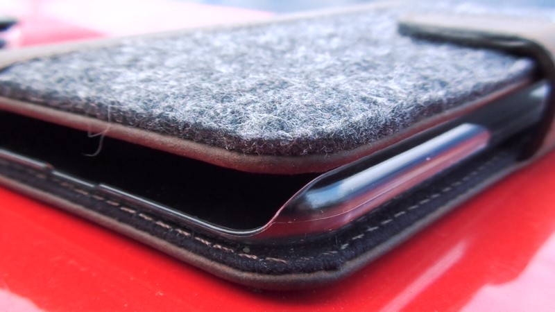 Одночасно з цим, виробник передбачив можливість захисту кутів смартфона, а також його бокових граней тим, що залишив відступ між кромками пластикового і шкіряного чохла на користь останнього.