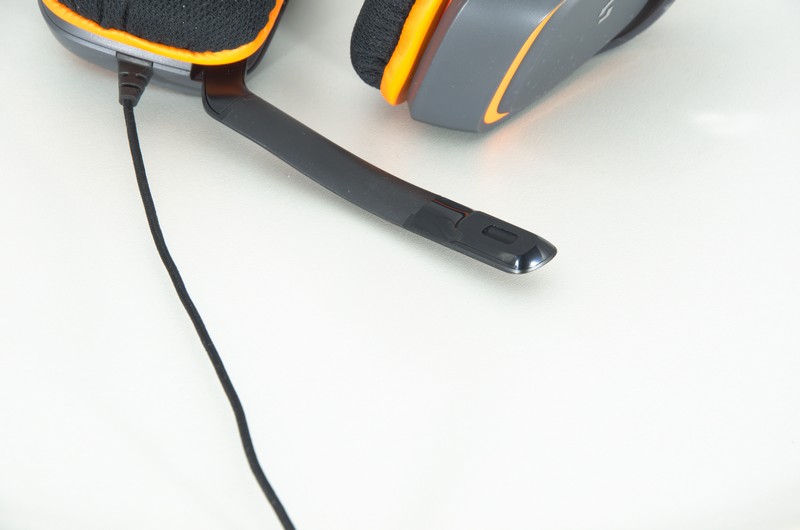 З лівого боку знаходиться відкидна дуга із однонаправленим мікрофоном. Вона гнучка і дозволяє легко регулювати положення.